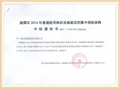 湖南省湘潭市2016年普通醫(yī)用耗材及檢驗(yàn)劑集中招標(biāo)采購(gòu)中標(biāo)通知書(shū)