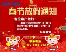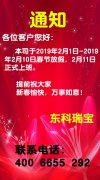 通知 各位客戶您好: 本司于2019年2月1日-2019年2月10日春節(jié)放假,2月11日正式上班。 提前祝大家 新春愉快,萬事如意! 東科瑞寶 聯(lián)系電話: 4006655 292...