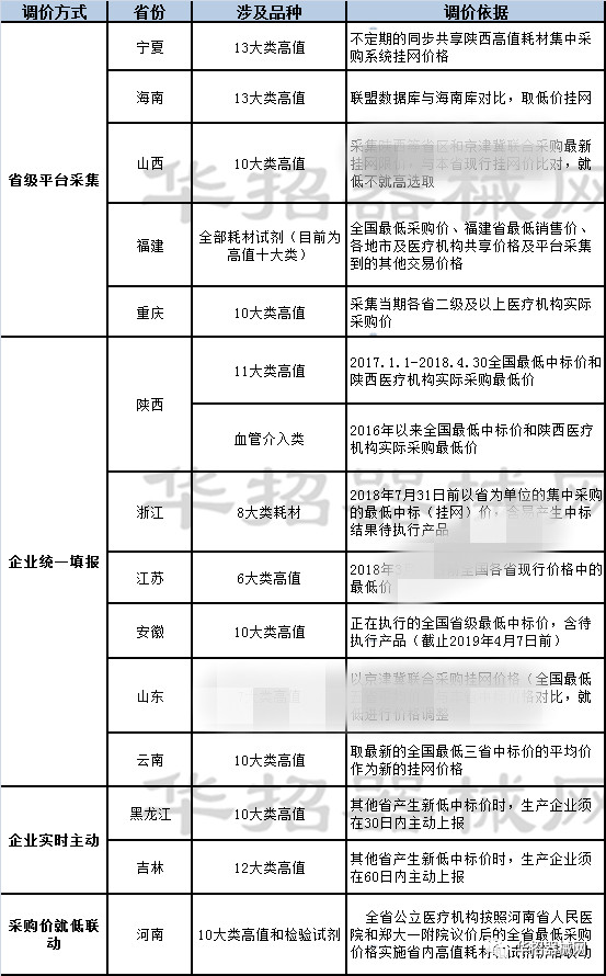 而自2013年國(guó)家發(fā)布86號(hào)文后,各地積極部署省內(nèi)集中采購(gòu)工作,到2018年絕大多數(shù)省份新一輪高值醫(yī)用耗材集中采購(gòu)相繼完成,價(jià)格聯(lián)動(dòng)、動(dòng)態(tài)調(diào)整成為各地招采工作的重頭戲,整個(gè)耗材集中采購(gòu)環(huán)境呈現(xiàn)出“參考全國(guó)***價(jià)”、“一地更比一地低”的特點(diǎn)。政策吹風(fēng)適逢合適的集采時(shí)機(jī),多省在近兩年掀起大規(guī)模的調(diào)價(jià)風(fēng)云。