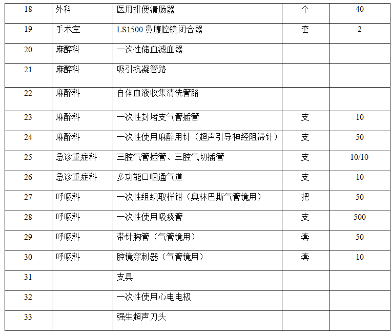 注意:資質(zhì)材料不完整、不合格的供應商不予接受。另外,以下器械如有配套耗材必須提供相應資質(zhì)。
