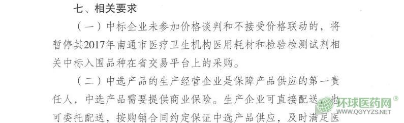 值得一提的是,在基礎談判價格申報階段,此前南通市的要求是如果過期不申報(截止到7月19日),將暫停其2017年南通市醫(yī)療衛(wèi)生機構醫(yī)用耗材和檢驗檢測試劑相關中標入圍品種在省平臺上的采購。