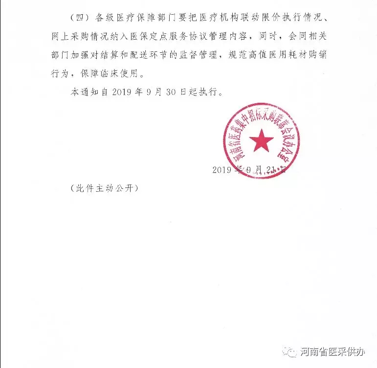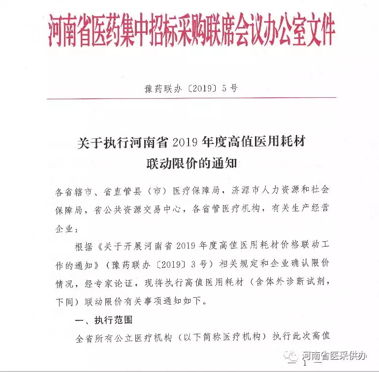 河南省公共資源交易中心2019年9月24日于網(wǎng)站發(fā)布《河南省公共資源交易中心》豫藥聯(lián)辦〔2019〕5號(hào)文件,***采購限價(jià)即將執(zhí)行。