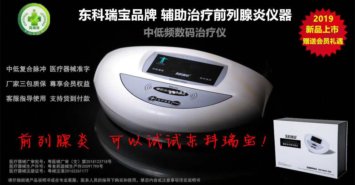 東科瑞寶牌前列腺治療儀器-中低頻數(shù)碼治療儀<家用系列/醫(yī)用系列>,為輔助治療前列腺炎等疾病專用泌尿外科男科治療儀器設備,屬于二類醫(yī)療器械產品,采用多級性中低頻復合脈沖電流,根據(jù)前列腺特性而專門設計的電腦程序控制,利用理療電極片等配件耗材輸出,并通過特定穴位經絡釋放起到相關治療理療作用,操作簡單方便,廠家三包質保,提供客服一對一指導服務,2019年度新產品優(yōu)價發(fā)售,并贈送雙倍會員積分,可兌換豐富會員禮品和會員優(yōu)先服務。