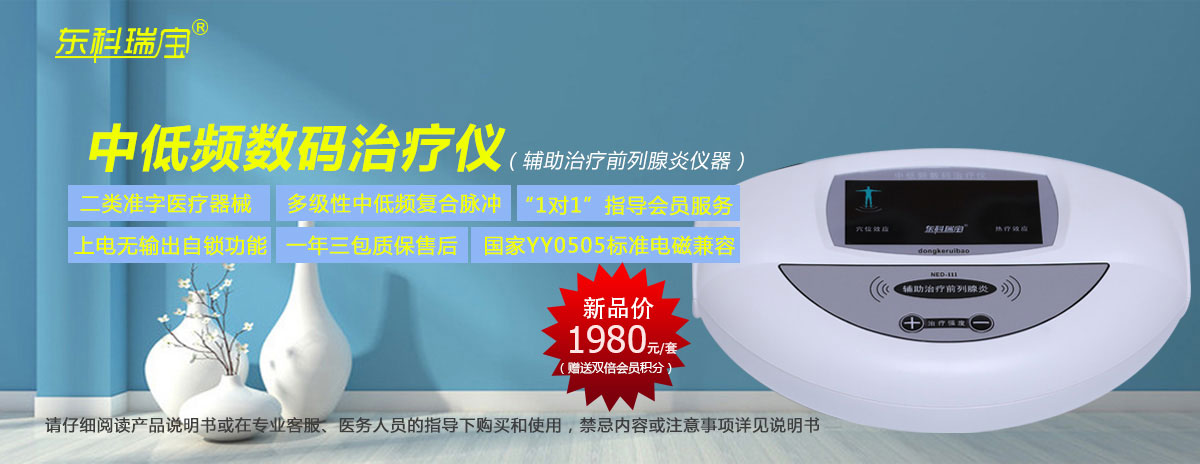 東科瑞寶牌中低頻數(shù)碼治療儀(輔助治療前列腺炎)采用多級(jí)性中低頻復(fù)合脈沖電流,根據(jù)前 列腺疾病治療的特性,由專門(mén)設(shè)計(jì)的電腦程序控制中頻脈沖電流3000Hz-至低頻脈沖電流370Hz之 間不斷變頻轉(zhuǎn)換,利用專用理療電極片等配件耗材輸出,并通過(guò)特定穴位經(jīng)絡(luò)釋放,起到輔助治療 前列腺炎等疾病的作用。 東科瑞寶品牌治療儀器使用220v交流電源,符合國(guó)家YY0505標(biāo)準(zhǔn)電磁兼容有關(guān)要求,具有耐壓4000 伏和上電無(wú)輸出自鎖的安防功能,可適用于家庭、中小醫(yī)療機(jī)構(gòu)、鄉(xiāng)鎮(zhèn)醫(yī)院、社區(qū)診所理療科室等。